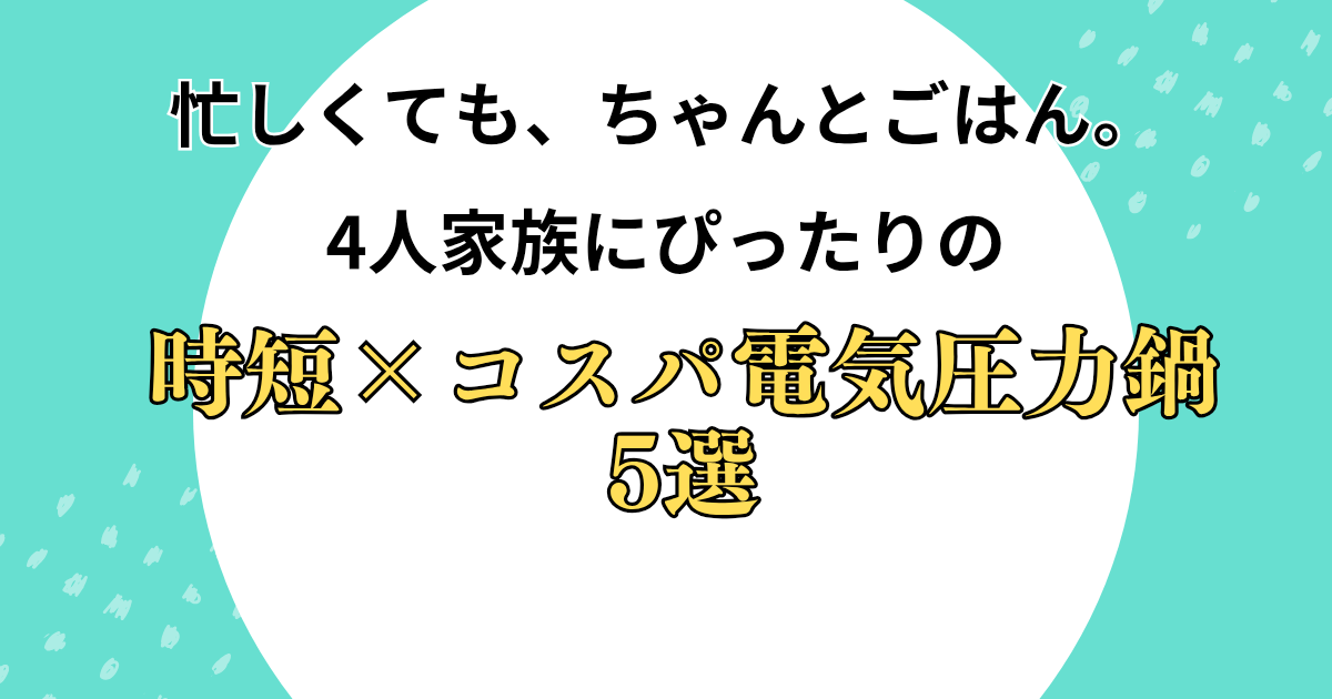 忙しい共働き家庭や子育て世代にとって、電気圧力鍋は「料理の時短×節約×安心」を叶える心強い味方です。