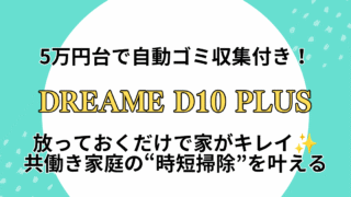ロボット掃除機 【レビュー】Dreame D10 Plus|5万円台で自動ゴミ収集&水拭き対応!共働き家庭に最適な時短ロボット掃除機 Dreame D10 Plusは5万円台ながら、自動ゴミ収集・水拭き・4,000Pa吸引を備えた高コスパロボット掃除機。共働き・子育て家庭の「放っておくだけでキレイ」な時短生活を叶える実力を徹底レビュー。口コミや他モデル比較も紹介。 2025.10.06 ロボット掃除機掃除の時短アイテム